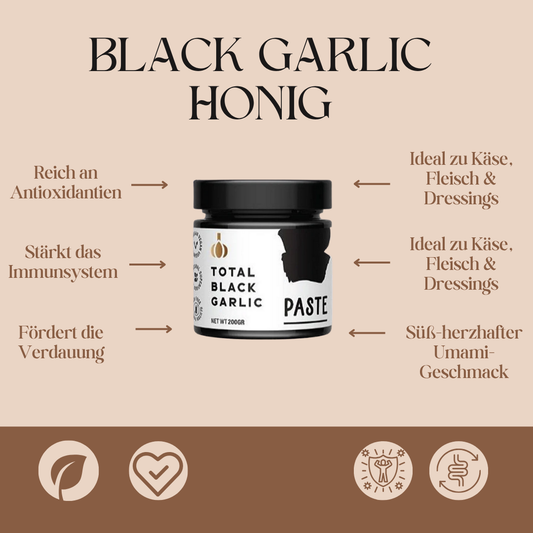 Black Garlic Honig – Feinkost-Aufstrich aus fermentiertem Schwarzem Knoblauch & Honig (100 g)