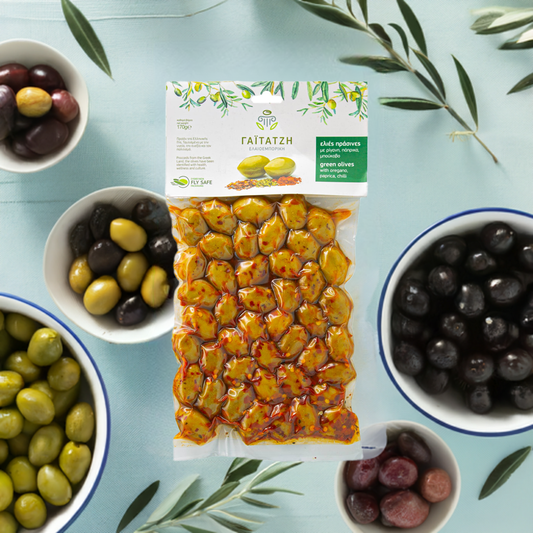 Grüne Oliven – 250 g Vakuumpack | Mit Oregano, Paprika & Chili